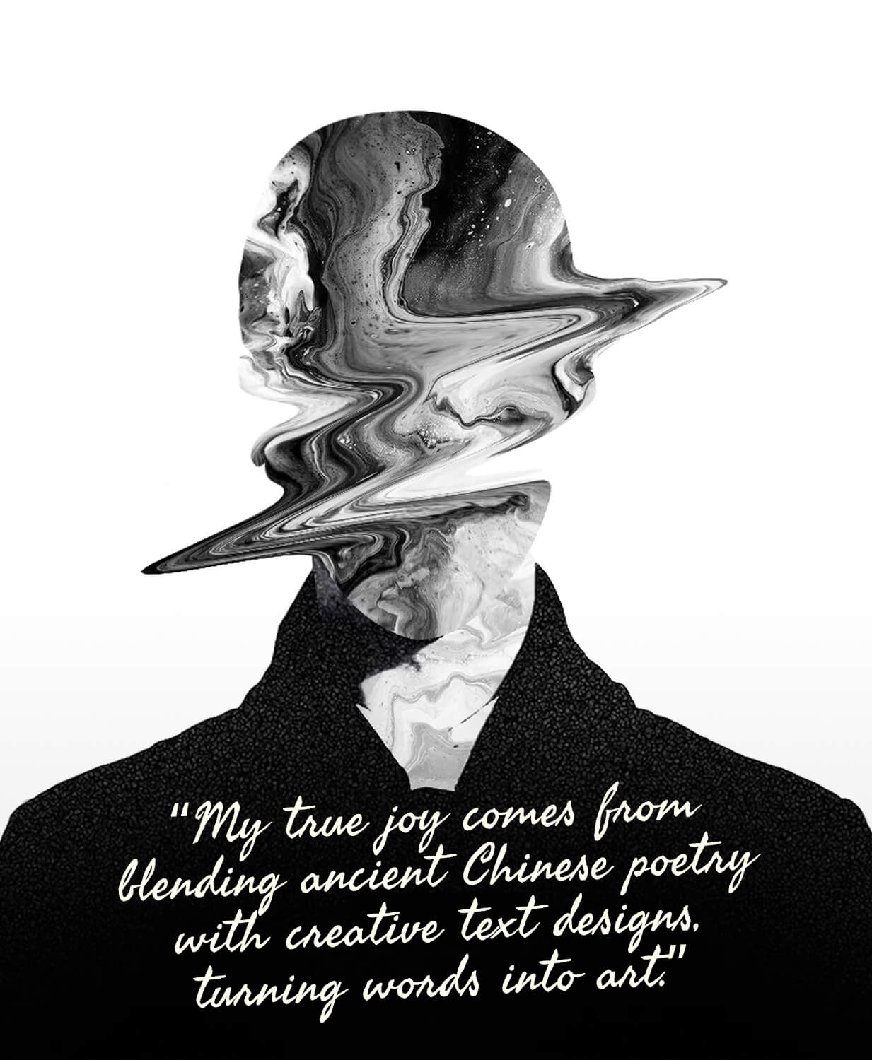 I work on projects like branding, visual design, and more, but my true joy comes from blending ancient Chinese poetry with creative text designs, turning words into art. I'm all about exploring new visual possibilities and would love to connect with fellow creatives who share the same spark!
